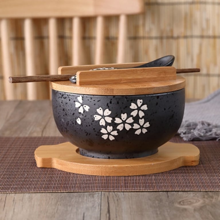 A traditional Japanese bowl with a wooden lid, chopsticks, and a spoon. Japanese ceramics have been used in restaurants for over 25 years, and their quality and durability are thoroughly confirmed. The colours are high quality, do not peel off, and also do not contain any harmful substances. The tableware is suitable for both dishwashers and microwaves.