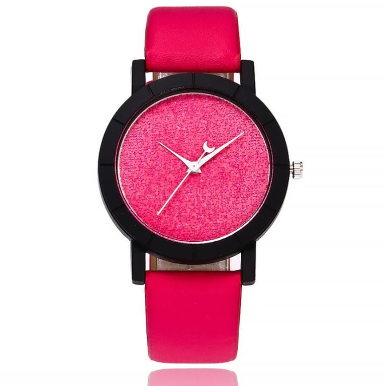 Women's watch with a leather-look strap and a black frame. Available in various colour options.