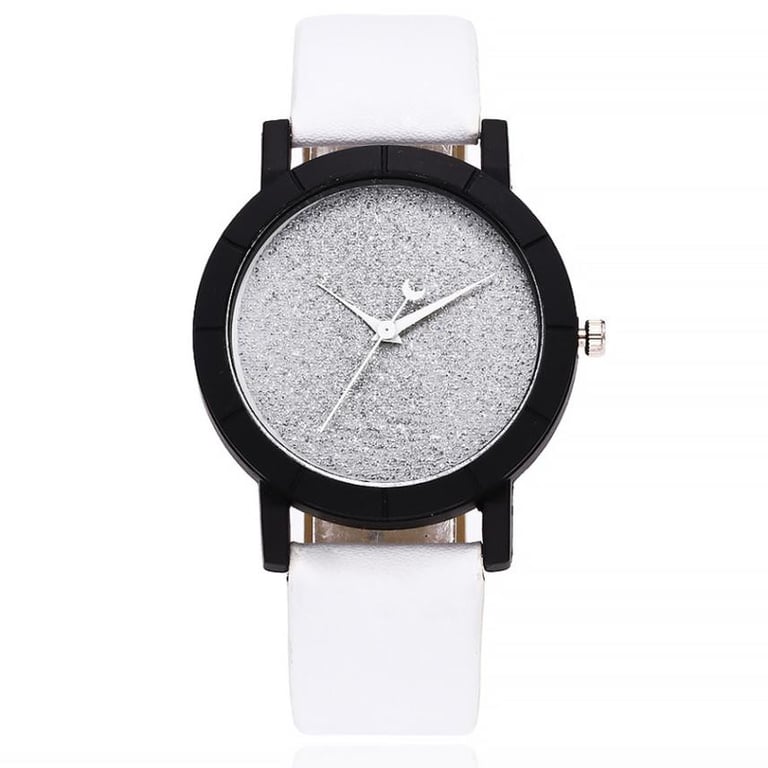 Women's watch with a leather-look strap and a black frame. Available in various colour options.