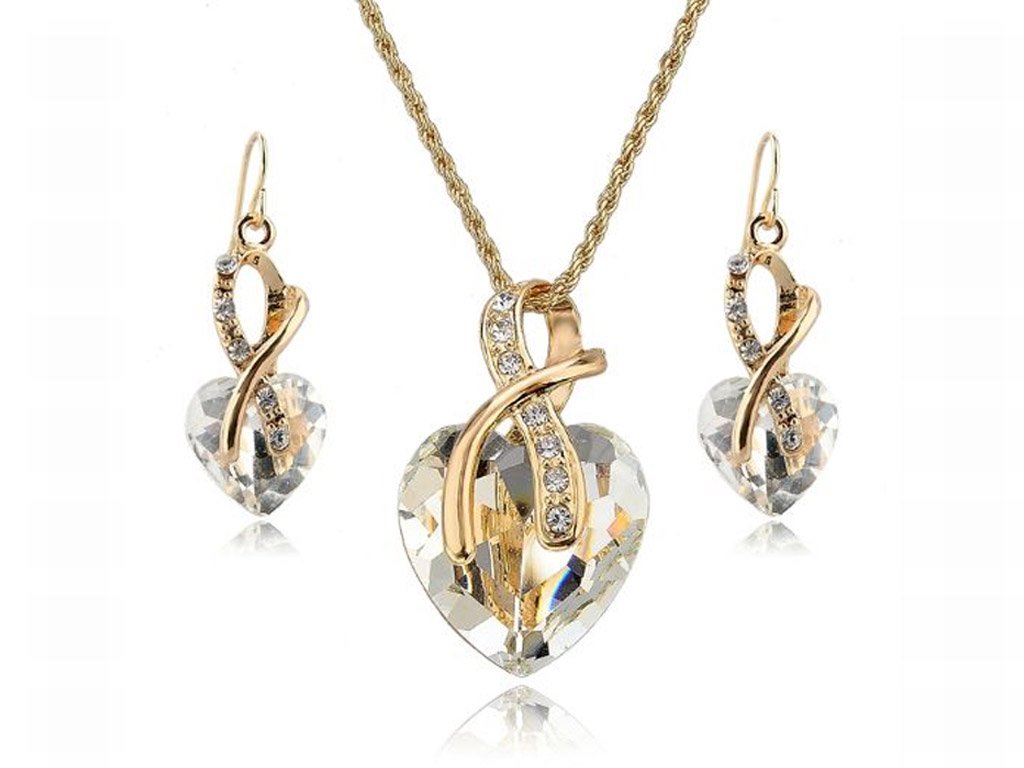 Jewellery gold set with crystal hearts