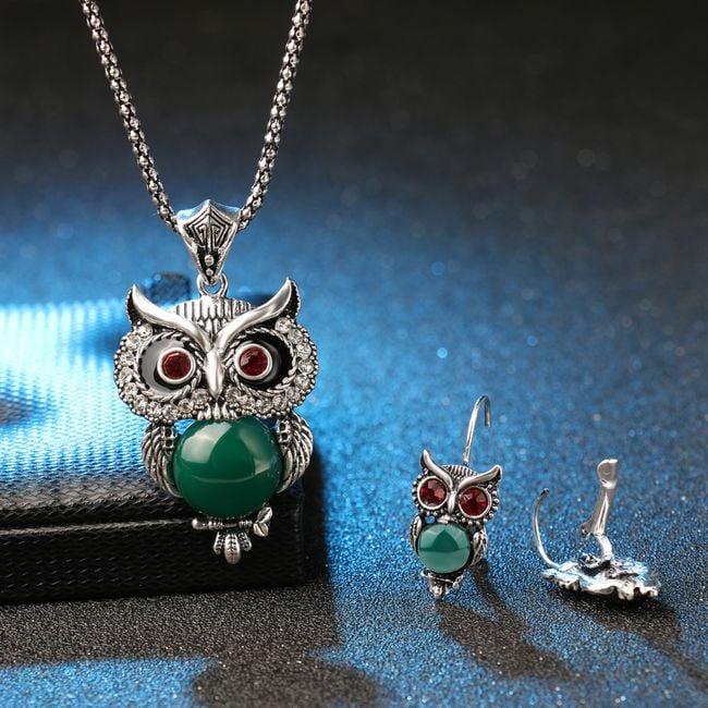 The jewellery set is decorated with owls. It serves as a cute accessory.