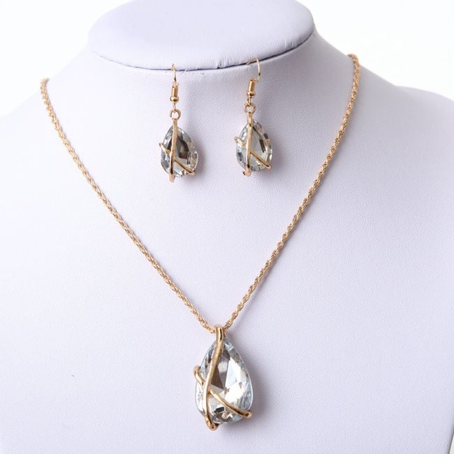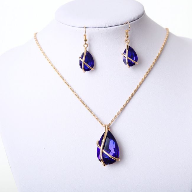 The jewellery set is the perfect accessory for special occasions for women. The set includes a necklace with matching earrings. The set is adorned with striking gemstones. You can choose from 5 colour variations.