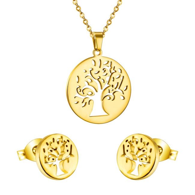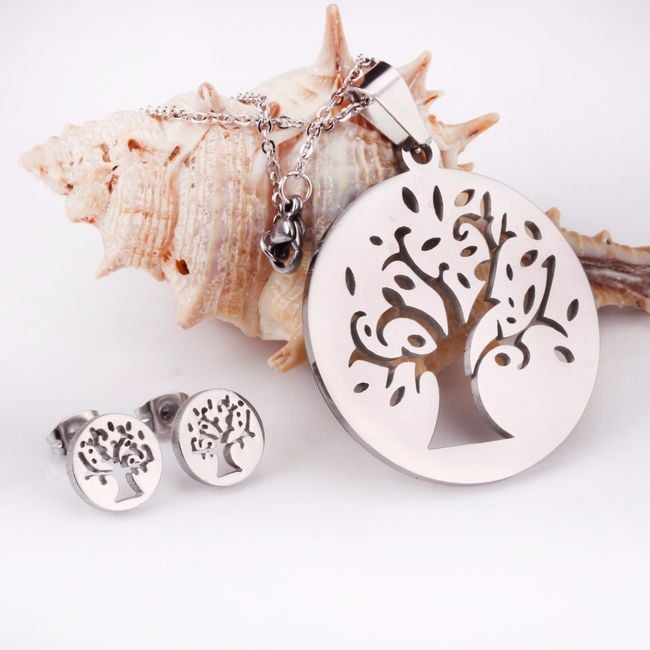 The jewellery set includes a necklace with a pendant and matching earrings. Choose from 2 colours.