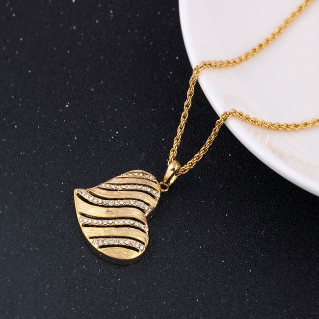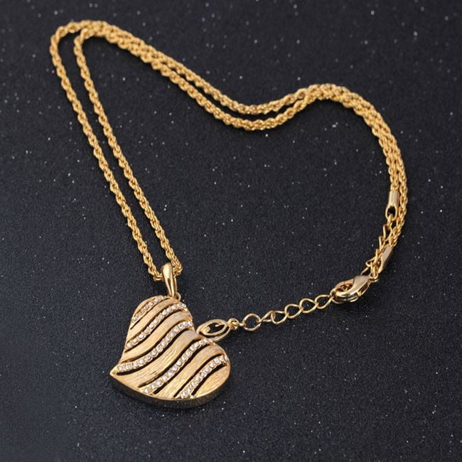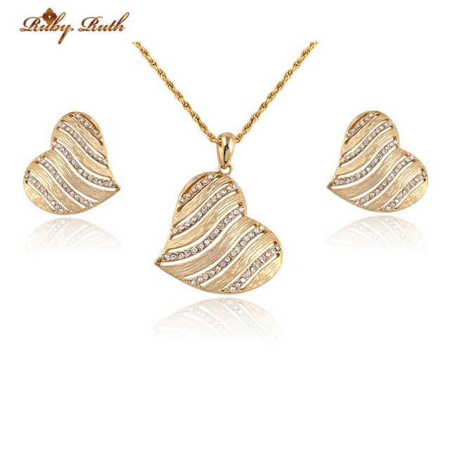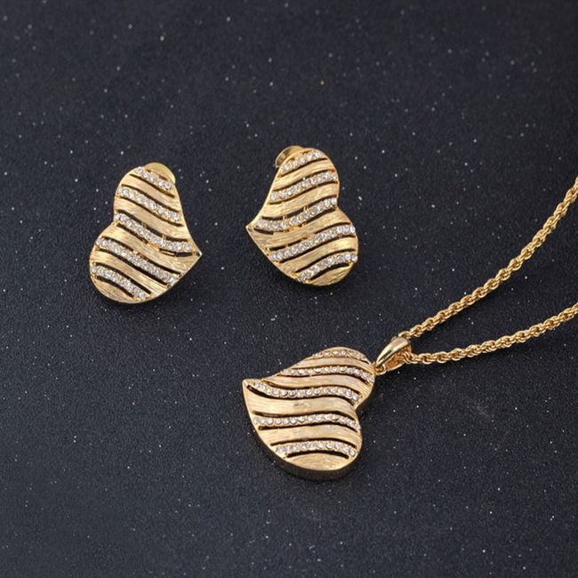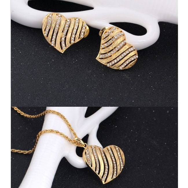 Beautiful jewellery set adorned with hearts is made in an elegant gold finish.
