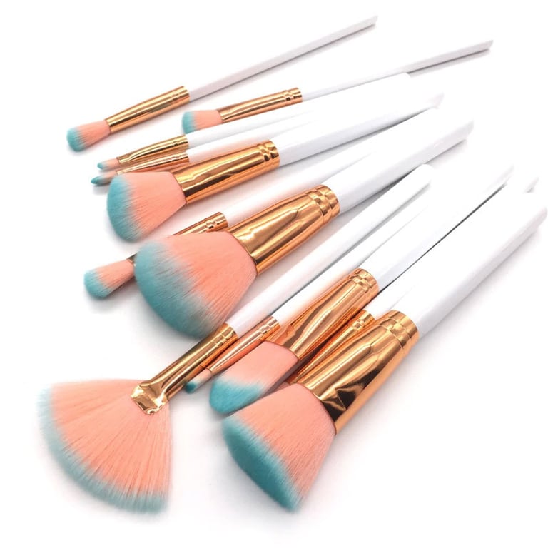 Create the perfect make-up with the cosmetic brush set. The set includes a total of twelve brushes.