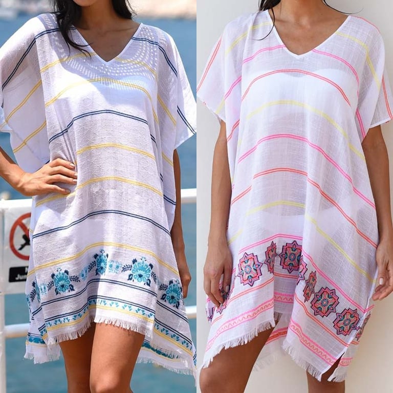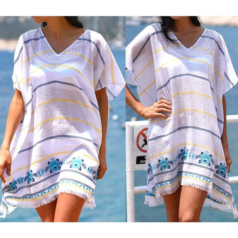 Stylish beach pareo that looks perfect and can be worn not only by the water but also for a pleasant evening stroll along the coast.