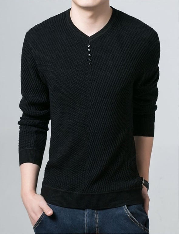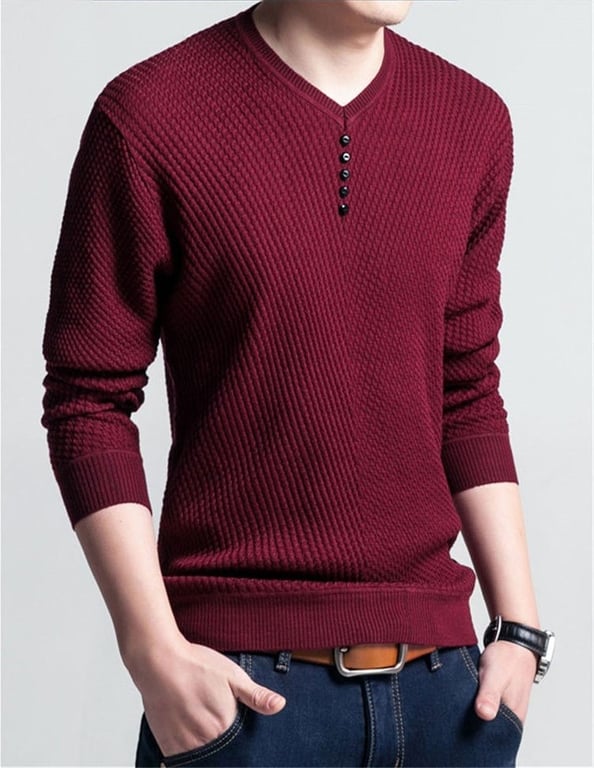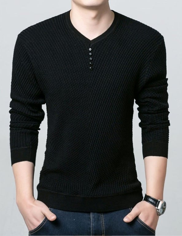 The modern men's sweater with interesting details will delight any man.
