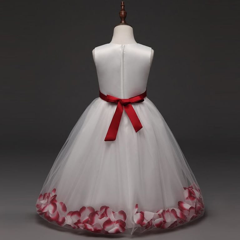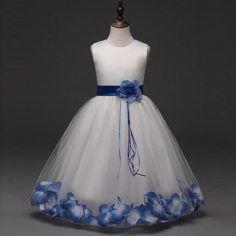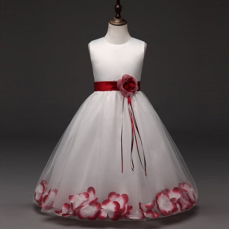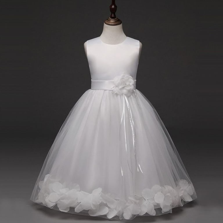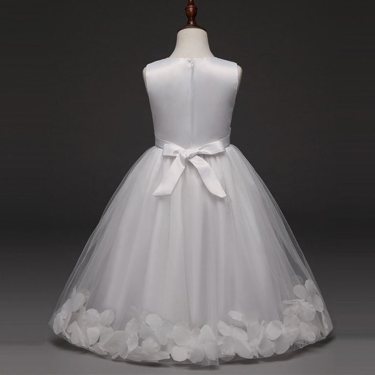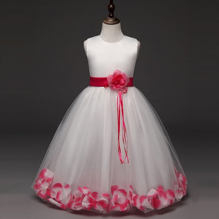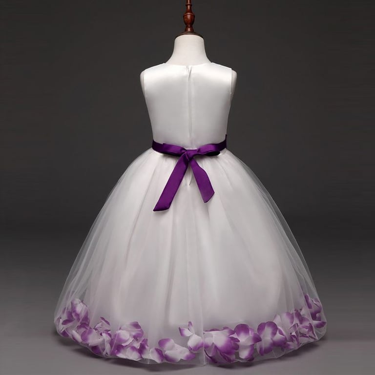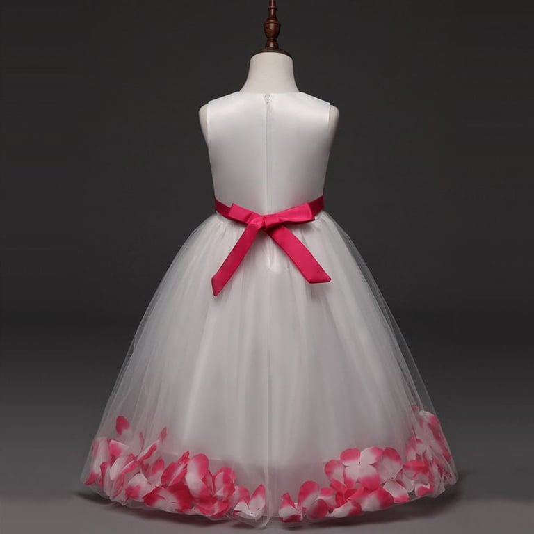 Beautiful girls' dress with a bow around the waist and flowers all over.