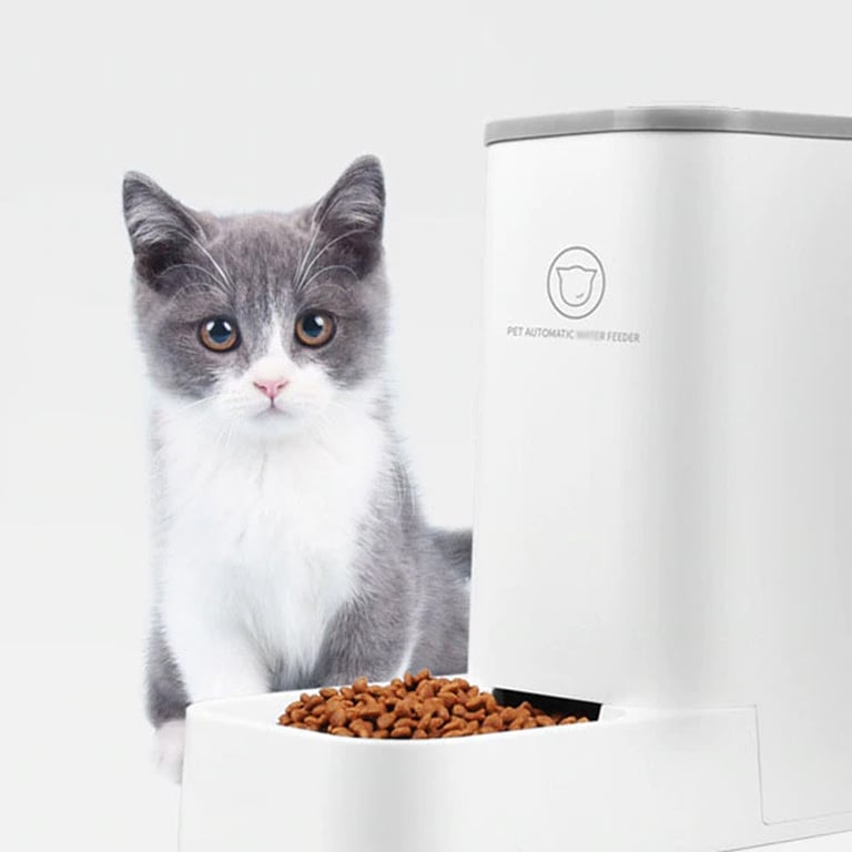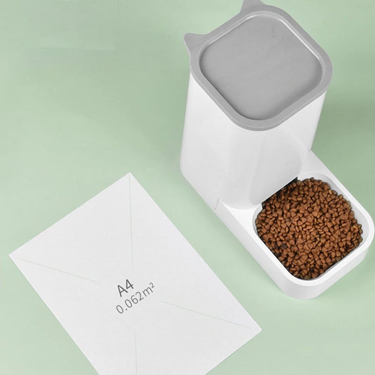 Practical dry food dispenser with a capacity of 2.1 kilograms.