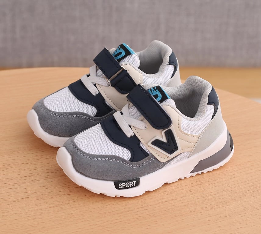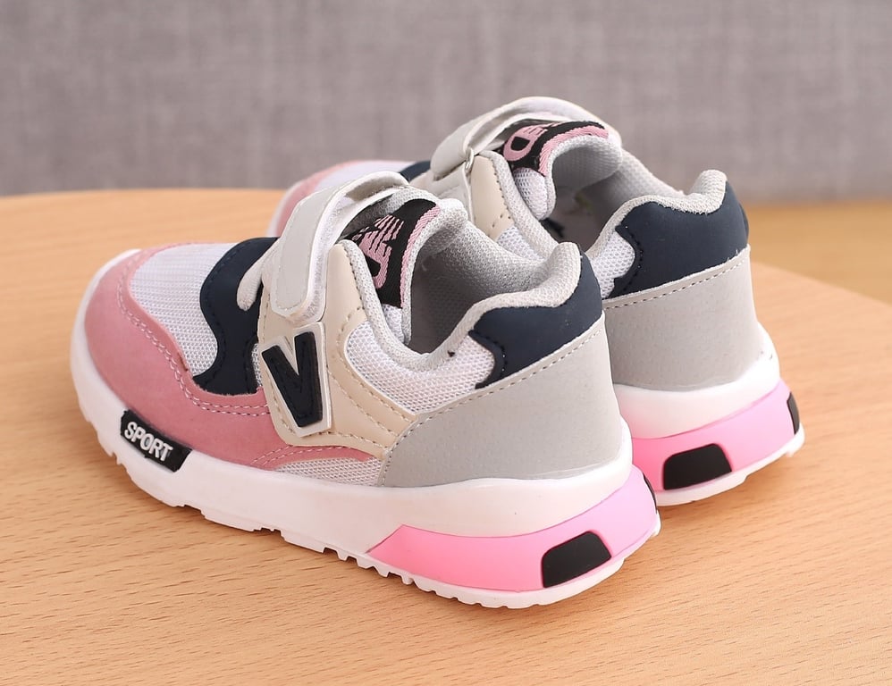 The trainers are breathable and fasten with Velcro.