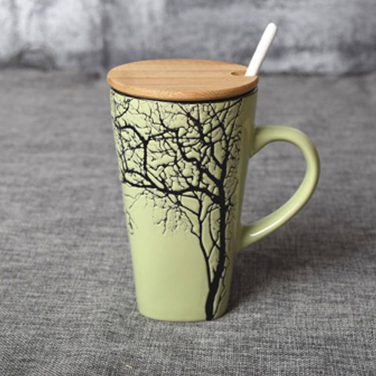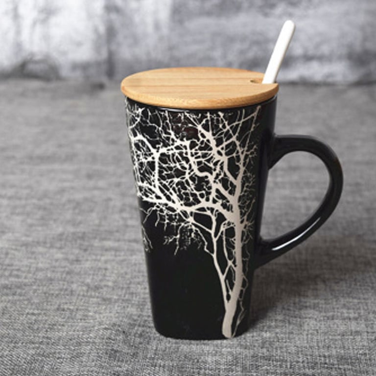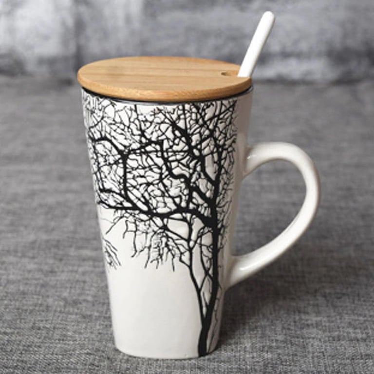 Designer mug with a lid and spoon.