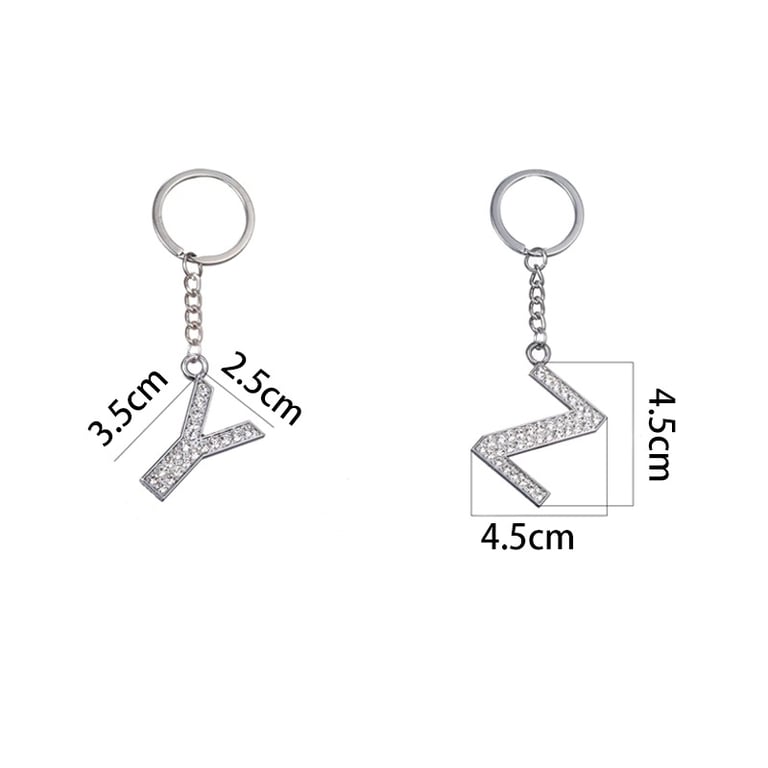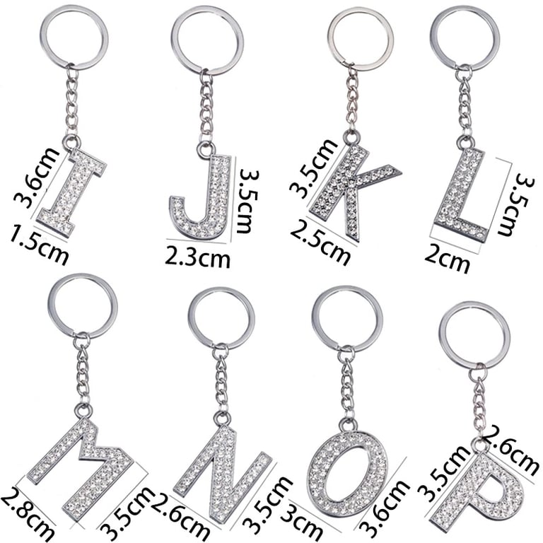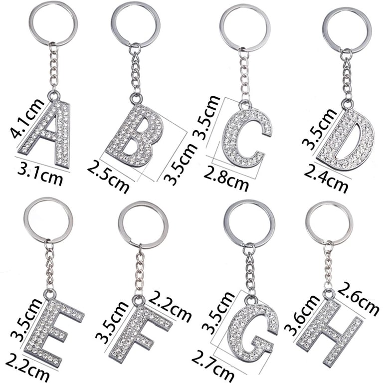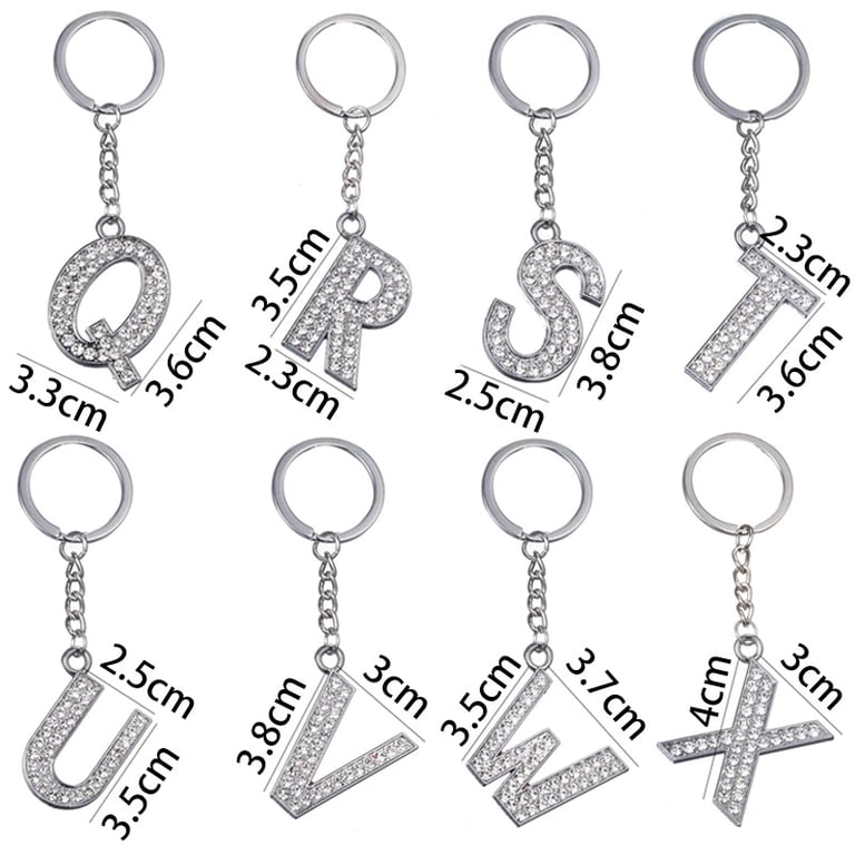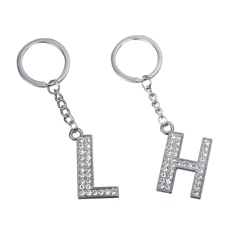Stylish keyring with letters, silver colour with gemstones. An original gift.