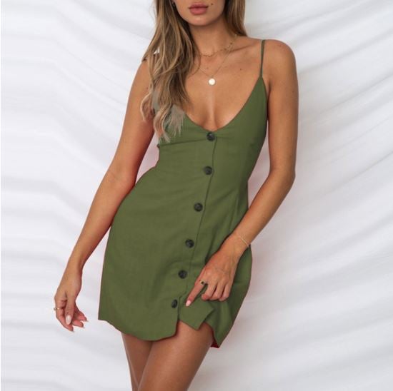 Khaki summer women's dress with buttons