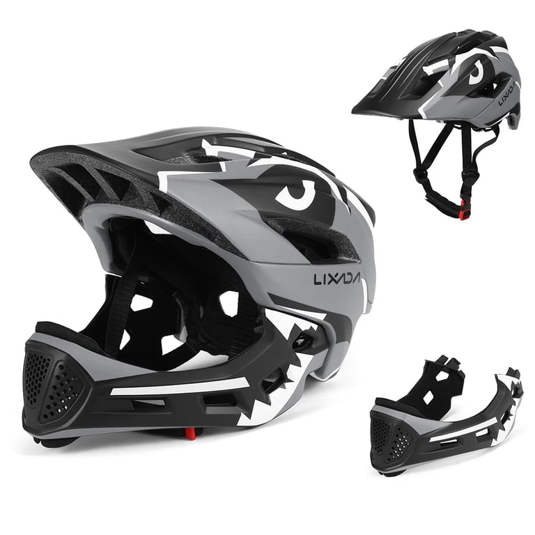 A children's removable full-face helmet provides maximum safety for cycling, skateboarding or rollerblading. The design with full chin protection is suitable for more dynamic sports and can easily be converted into a classic open-face helmet in moments. An attractive colour finish with an original design will appeal to every child, and the ergonomic shape ensures comfortable wear all day.