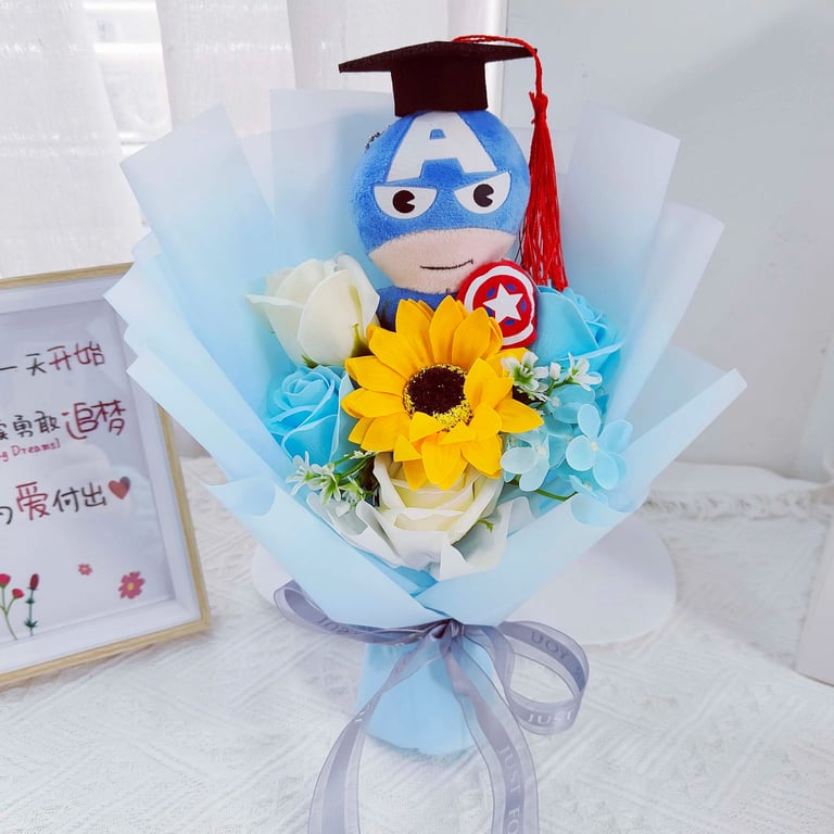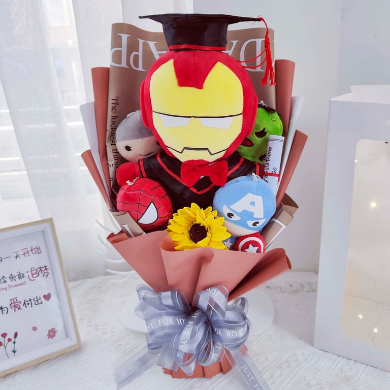Children's birthday bouquet with a plush toy Marvel Superheroes.