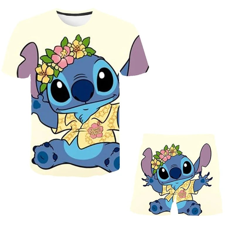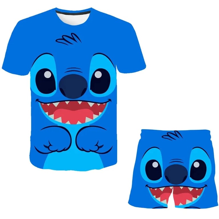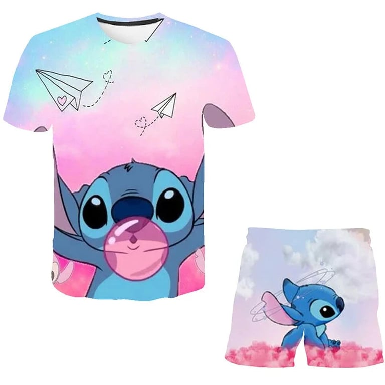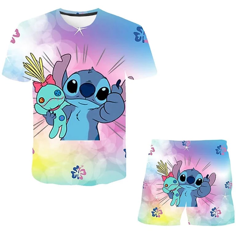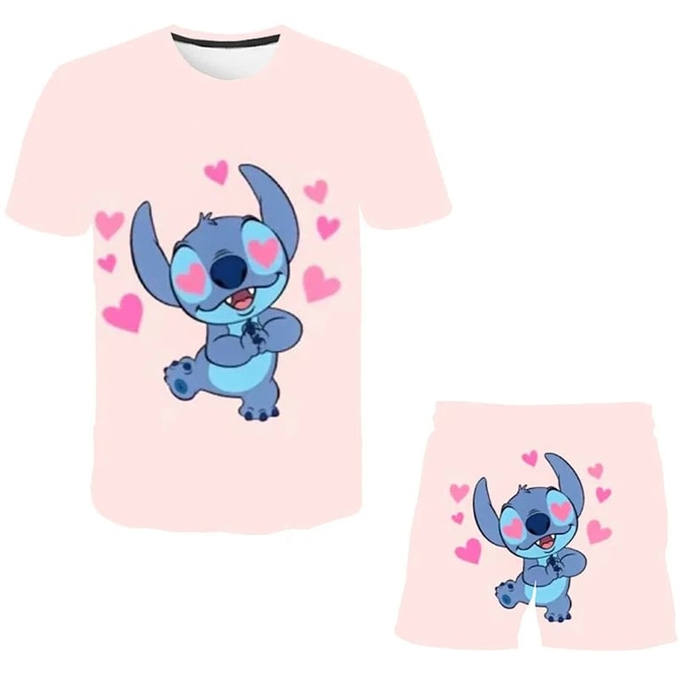 Children's designer set: T-shirt and shorts featuring Lilo & Stitch.