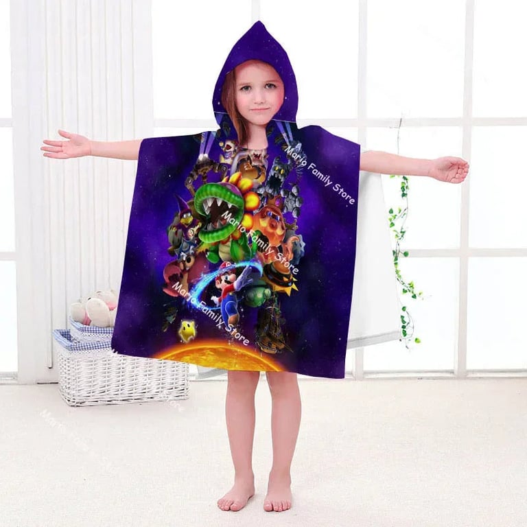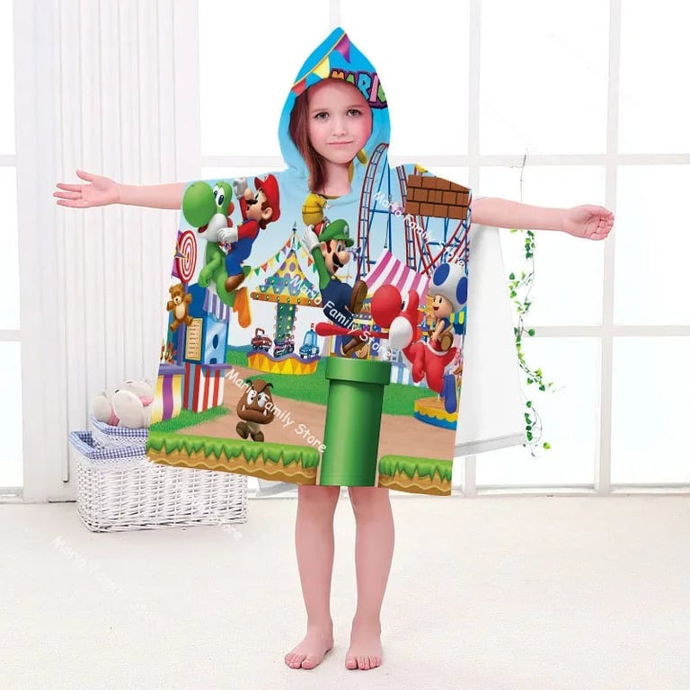 Kids' hooded towel featuring Super Mario.