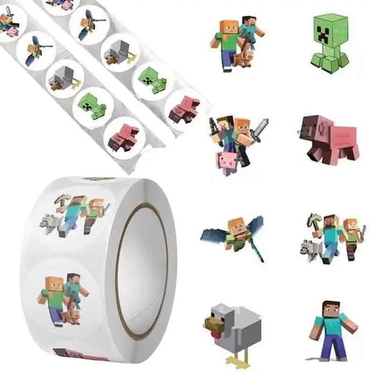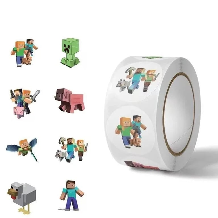 Stickers on a roll with designs from the popular game Minecraft are a great addition for fans of this pixelated world, for children and adults alike. The pack contains 500 round stickers with various characters and animals, such as Creeper, Steve, a pig, or a chicken. The stickers are ideal for decorating notebooks, gifts, diaries, laptops, bottles, or for crafting and scrapbooking. Thanks to the practical roll packaging, they peel off easily and are quick to use.