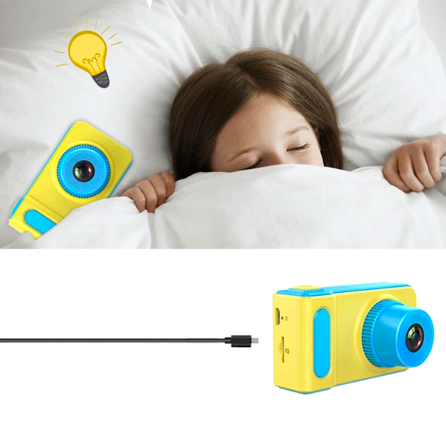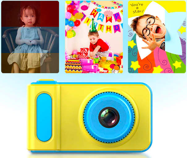 A children's camera as a perfect gift for a creative and curious child. This TIP model features a 2" LCD display, built-in microphone, and photo and video functions. It has a beautiful, attractive, colourful design and a simple control method – just 5 control buttons.