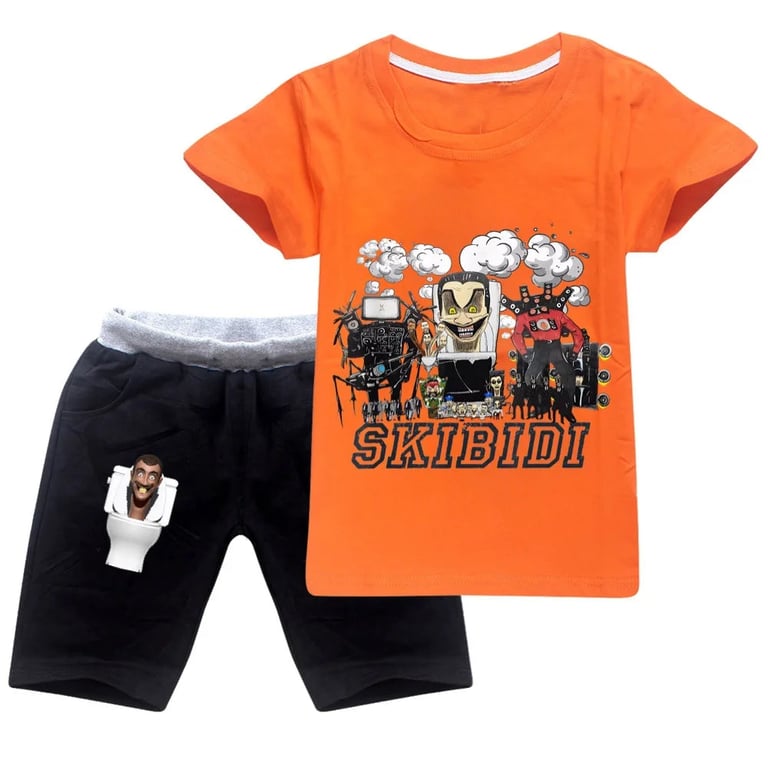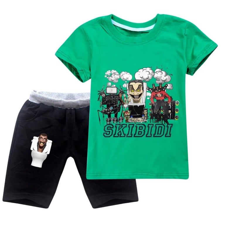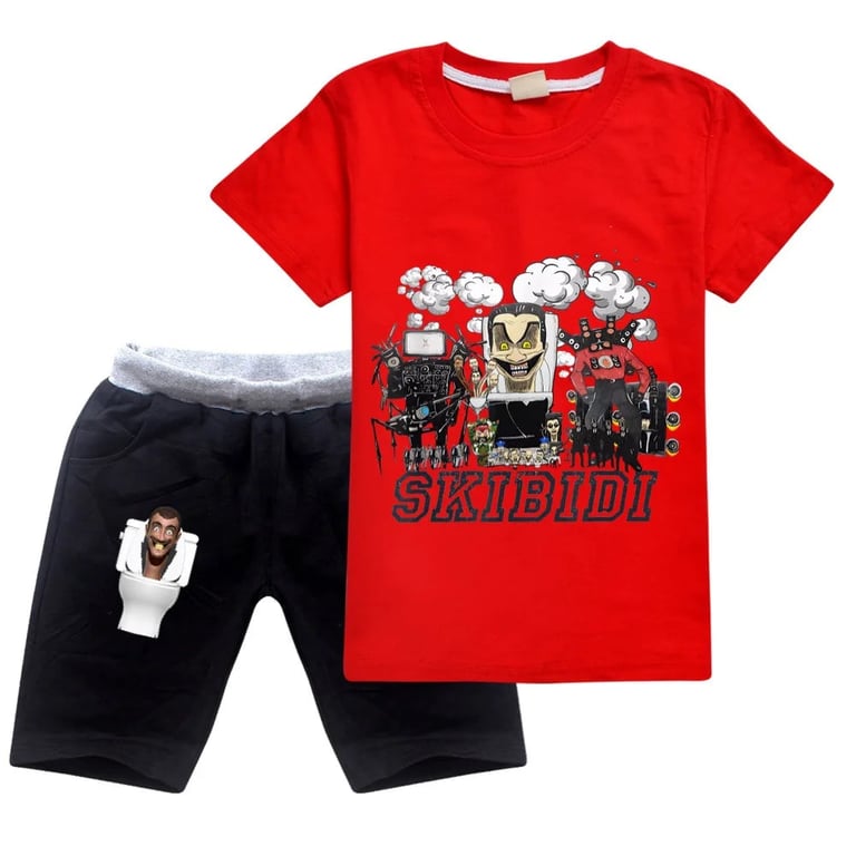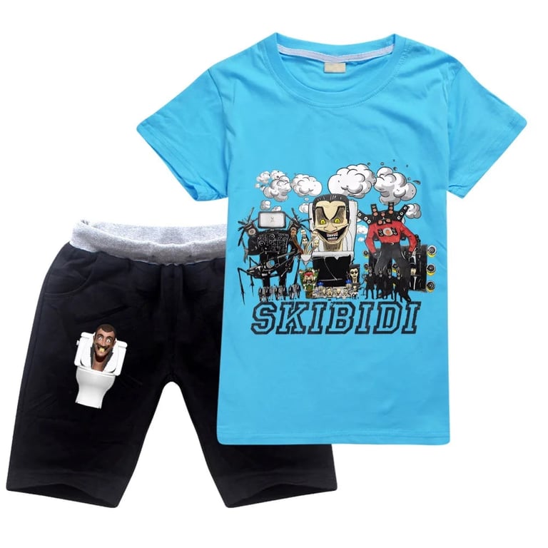 Children's summer set: T-shirt and shorts Skibidi Toilet. Material: 100% cotton Size chart (cm) Size | T-shirt length | Chest circumference | Height 100 | 43 | 64 | 90–100 110 | 46 | 68 | 100–110 120 | 49 | 72 | 110–120 130 | 52 | 75 | 120–130 140 | 56 | 78 | 130–140 150 | 60 | 81 | 140–150 160 | 63 | 84 | 150–160 170 | 66 | 88 | 160–170 Size chart (cm) Size | Shorts length | Hip circumference 100 | 36 | 71 110 | 39 | 76 120 | 42 | 81 130 | 45 | 85 140 | 48 | 90 150 | 51 | 95 160 | 54 | 100 170 | 57 | 105