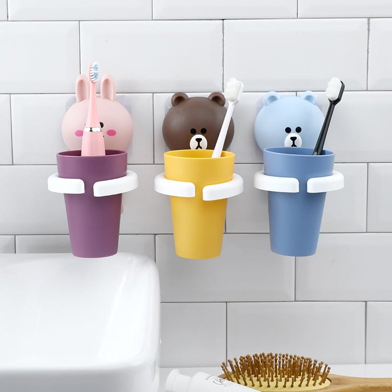 Kids' wall-mounted toothbrush holder. Material: Plastic