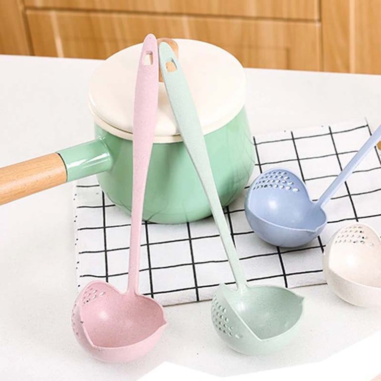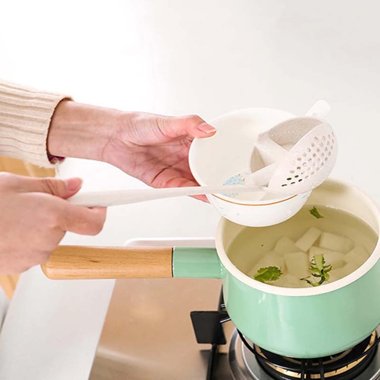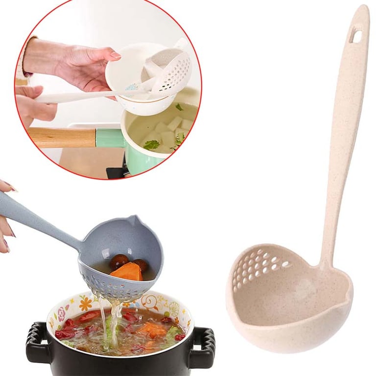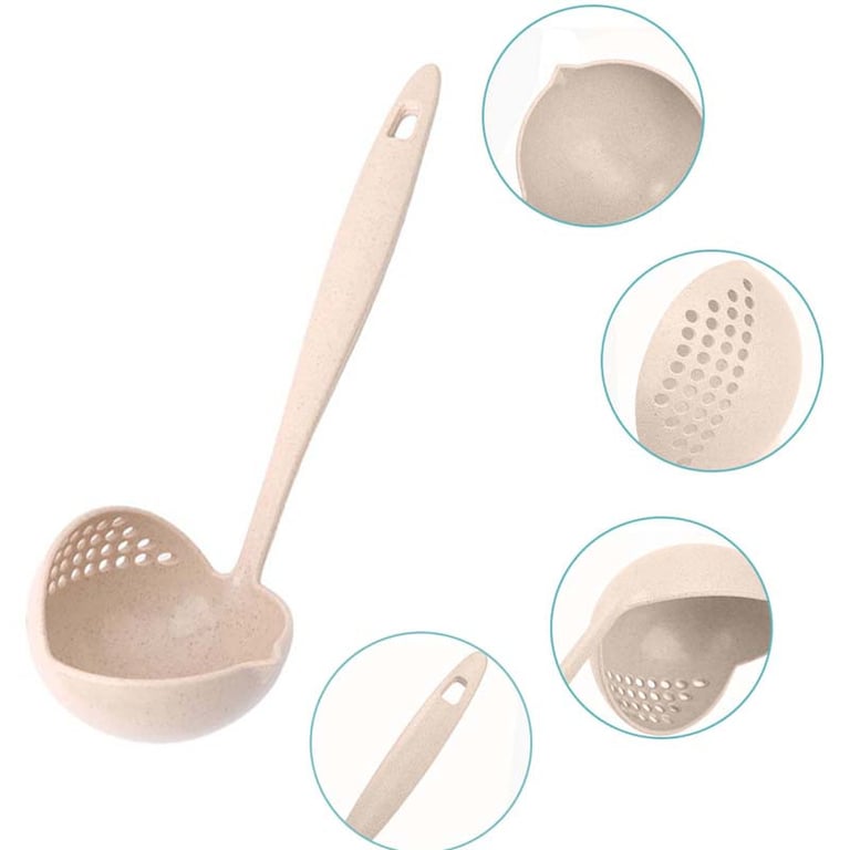 A practical ladle with a strainer, suitable for cooking various dishes.