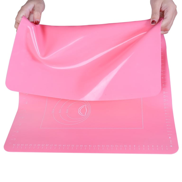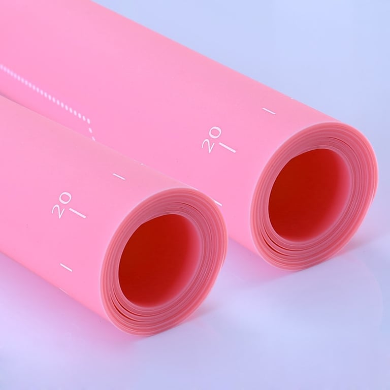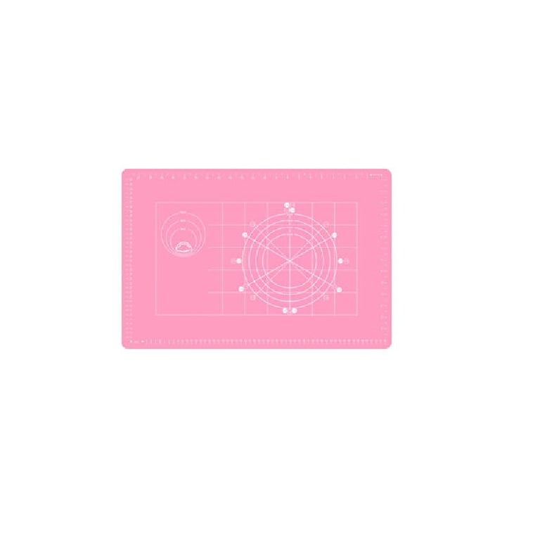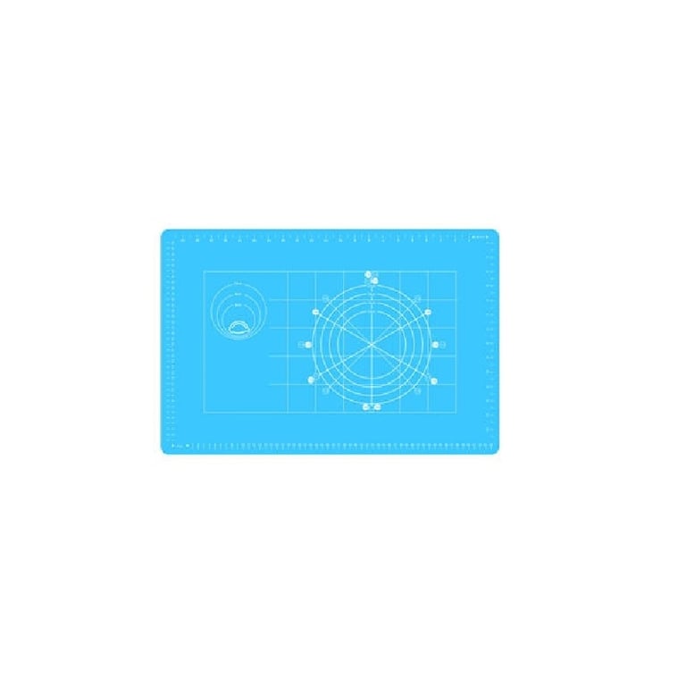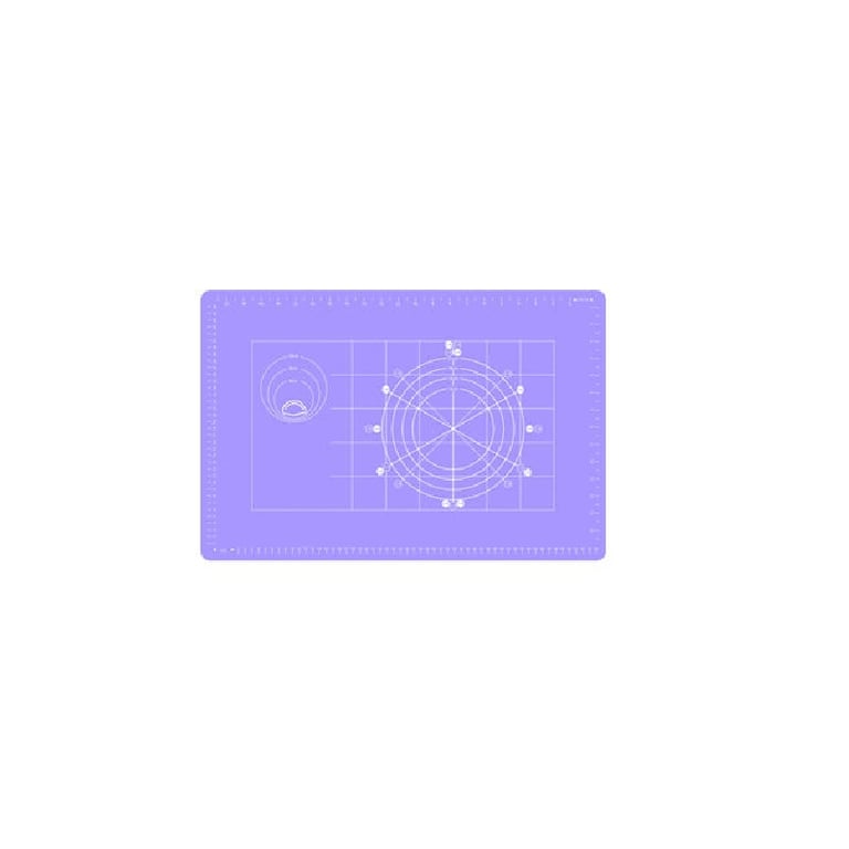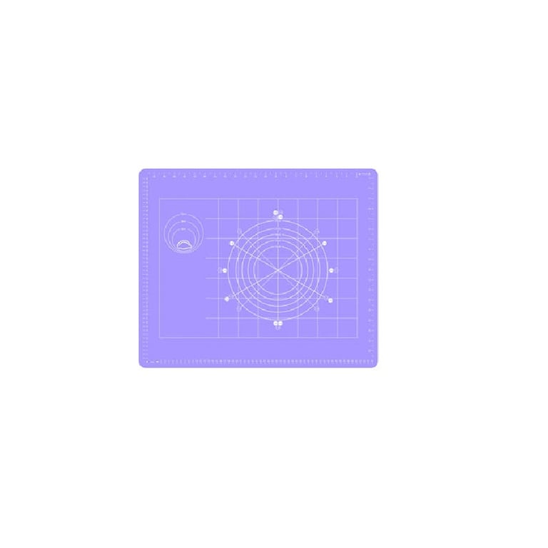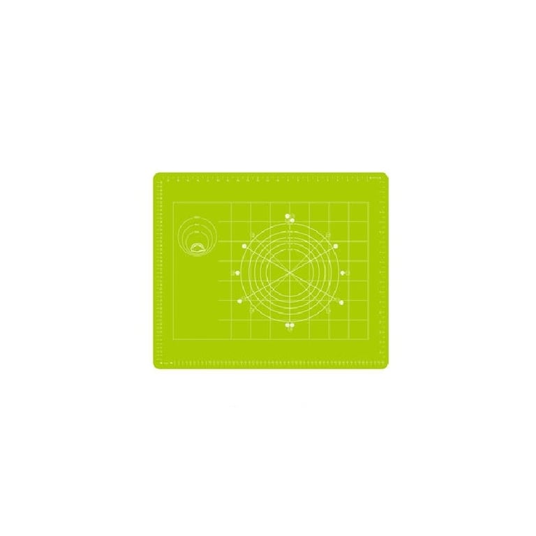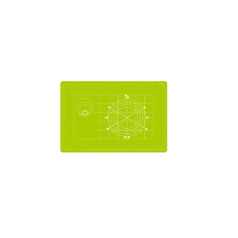 The mat has a measuring scale on three sides. Circular patterns for cookies or pizza.