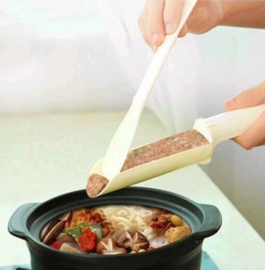 Plastic scoop with a spatula for making dumplings for soup, meatballs or gnocchi.