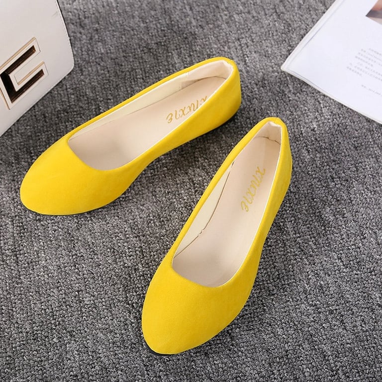 Women's ballet flats with a suede look. The ballet flats have a flat sole without a heel and a tapered toe. Available in various colour options.