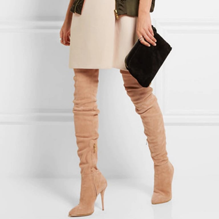 In these extra high knee-high boots, your legs will be almost completely covered, so you won't feel cold.
