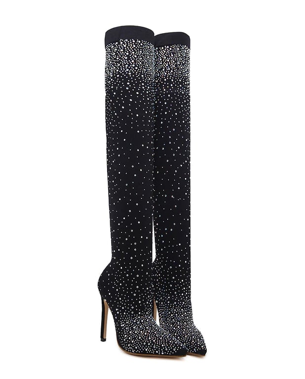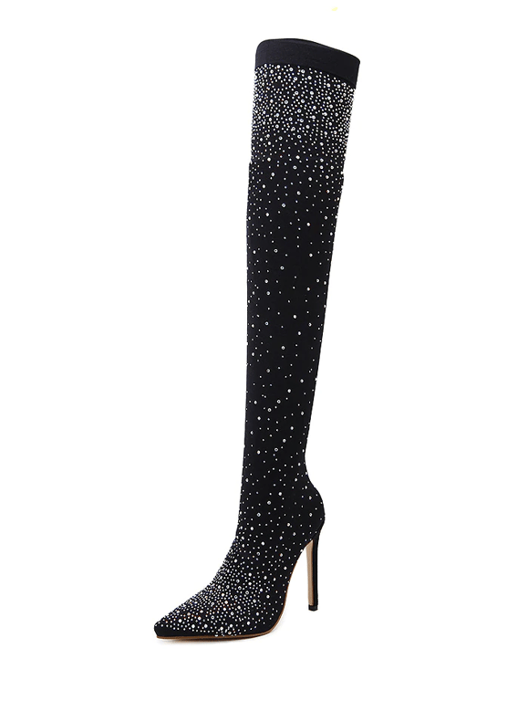 Knee-high women's boots with rhinestones
