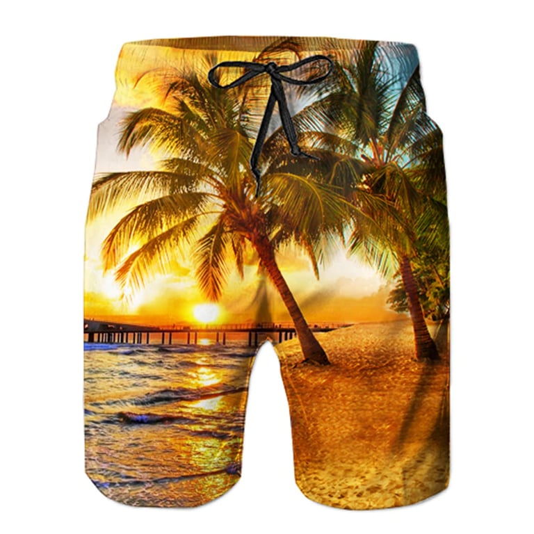 These Hawaiian-style shorts are perfect for the beach by the sea.