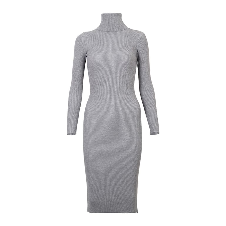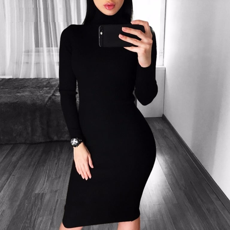Warmer dress with a roll neck, ideal for cooler seasons.