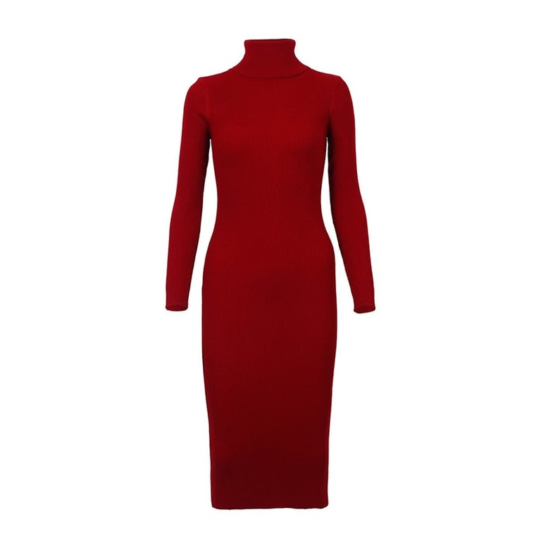 Warmer dress with a roll neck, ideal for cooler seasons.
