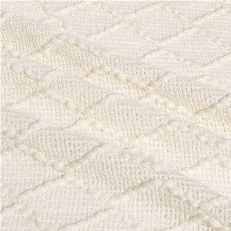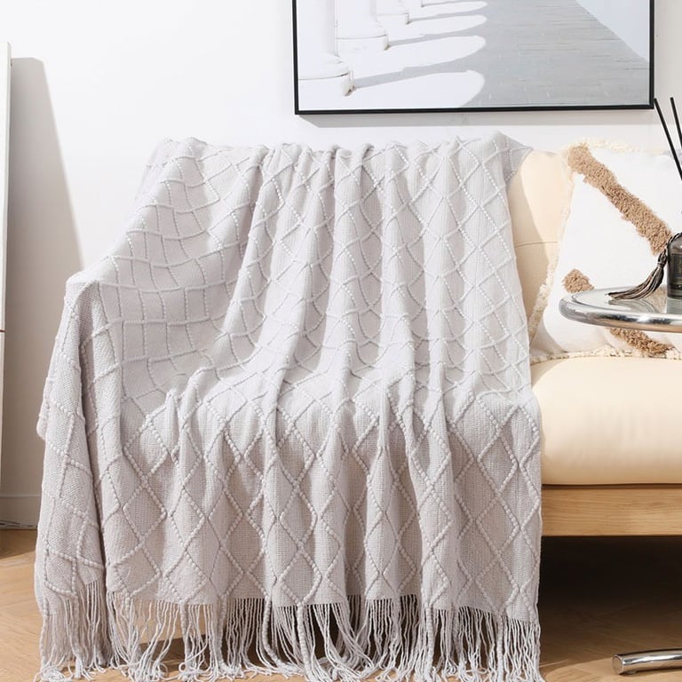 Wrap yourself in warmth and style with this beautiful knitted throw. It is made from soft polyester fabric. Perfect for snuggling on the sofa or using as a bedspread. The intricate knitted pattern and fringes add a touch of luxury. With dimensions of 127 x 152 cm, it will keep you warm all night long.
