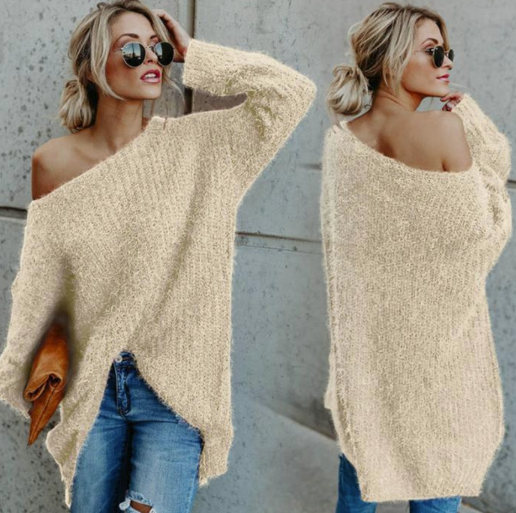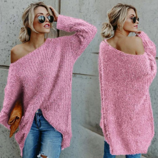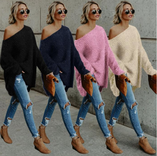 Knitted comfortable beautiful women's sweater with long sleeves