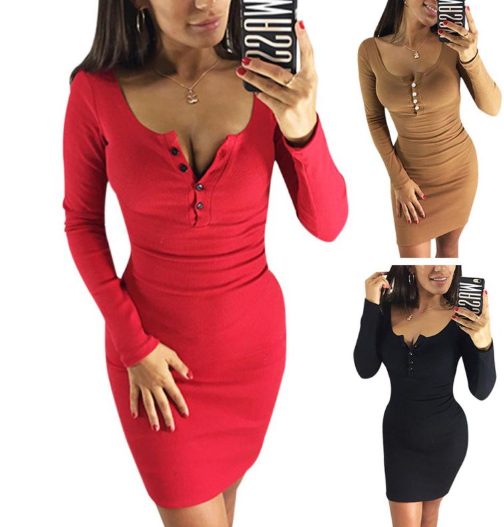 Knitted short sexy women's autumn dress