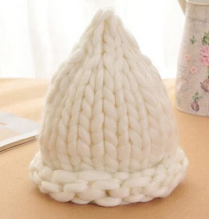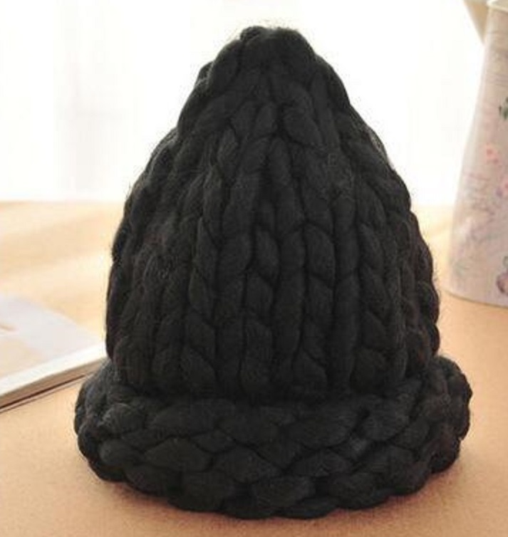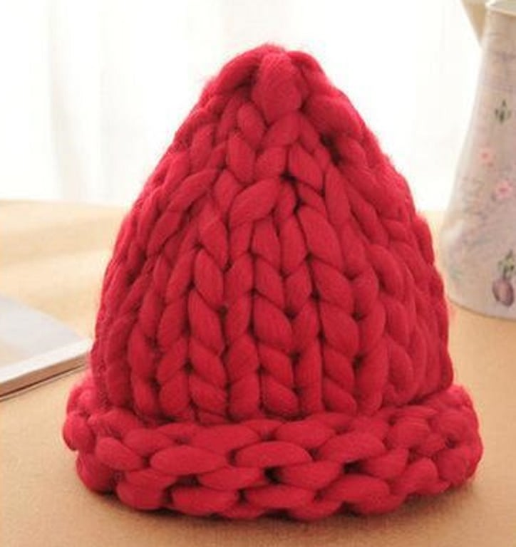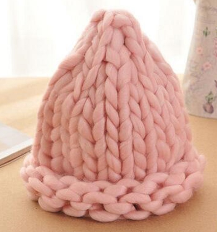 Coarsely knitted warm winter hat for chilly days.