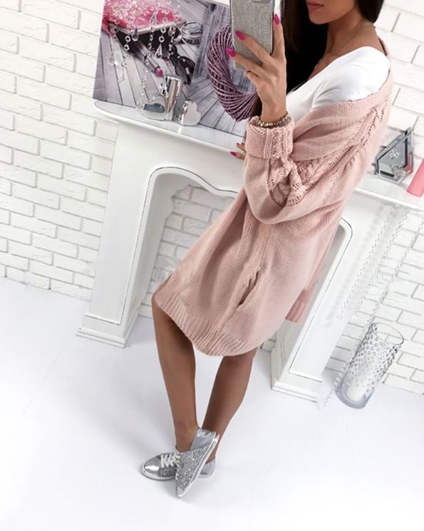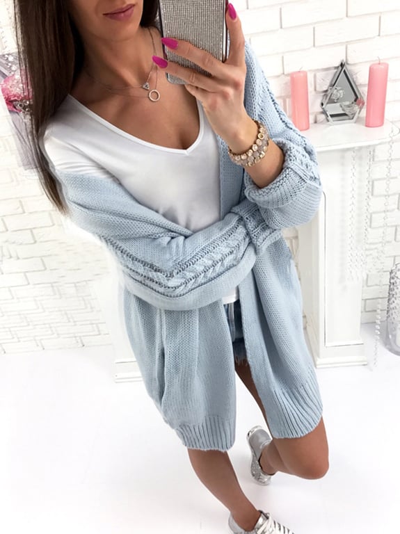Knitted women's cardigan with pockets, interesting design.