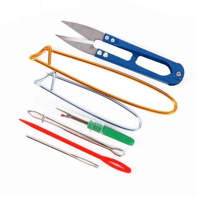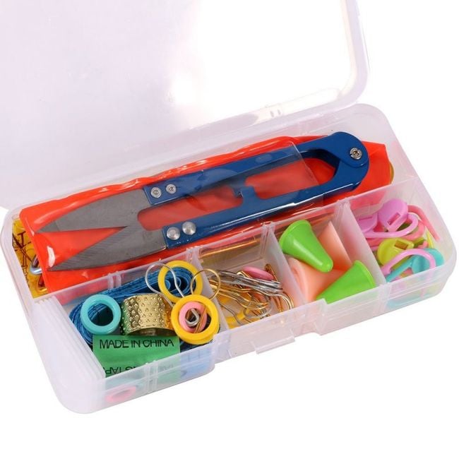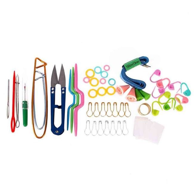 The set includes knitting and sewing accessories.