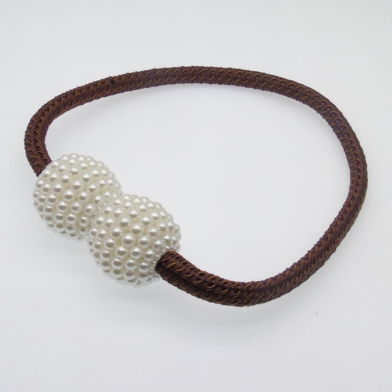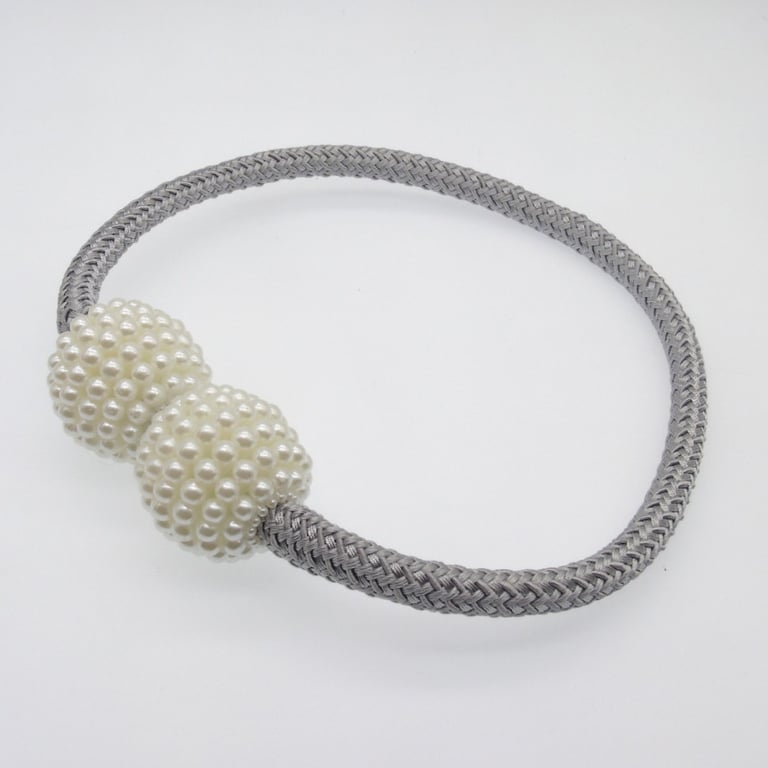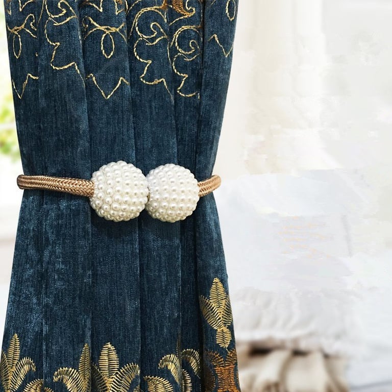 Magnetic curtain clip with pearl balls. Available in various colour options.