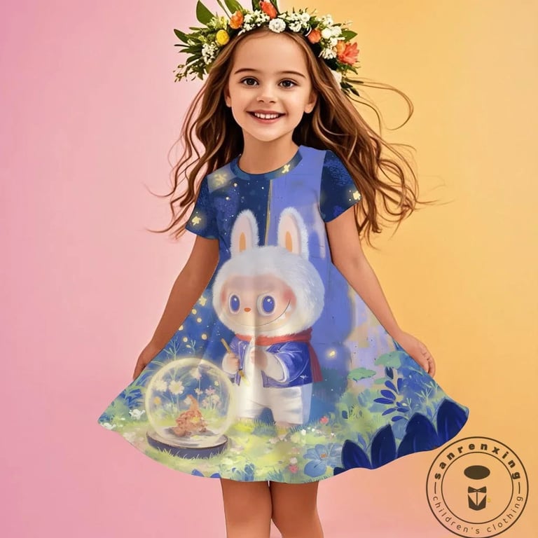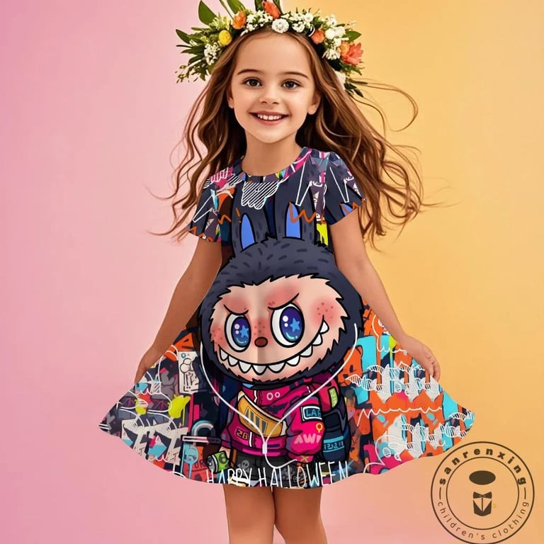 Cute summer dresses featuring Labubu motifs will bring a smile to every little girl's face. The light and comfortable material ensures maximum comfort even during hot summer days. The playful 3D print with cartoon characters makes the dress a stylish and original piece for the wardrobe, suitable for everyday wear as well as special occasions.