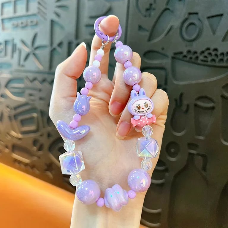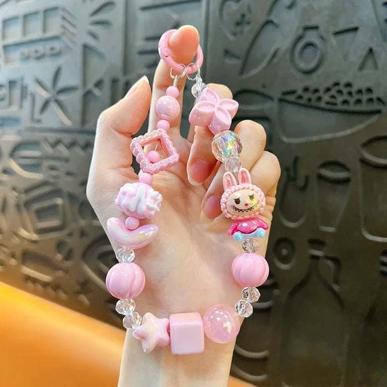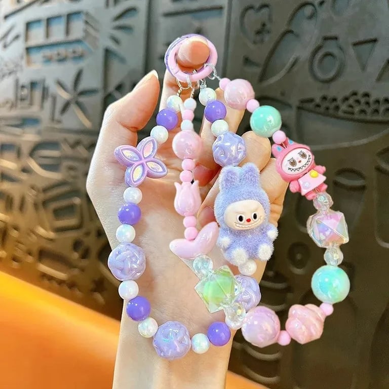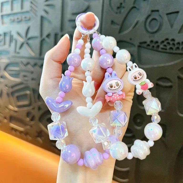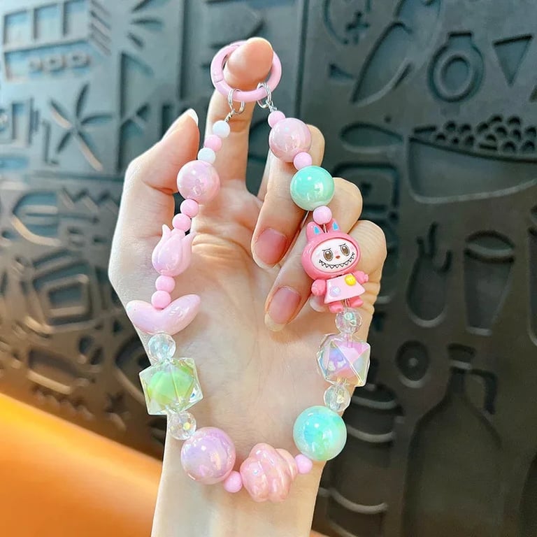 A cute beaded pendant for bags and phones featuring the Labubu character is a stylish and playful accessory for children and adults. Thanks to the colourful beads and original design, it will delight every kawaii style enthusiast and will look great not only on mobile but also on keys, a backpack or a handbag.
