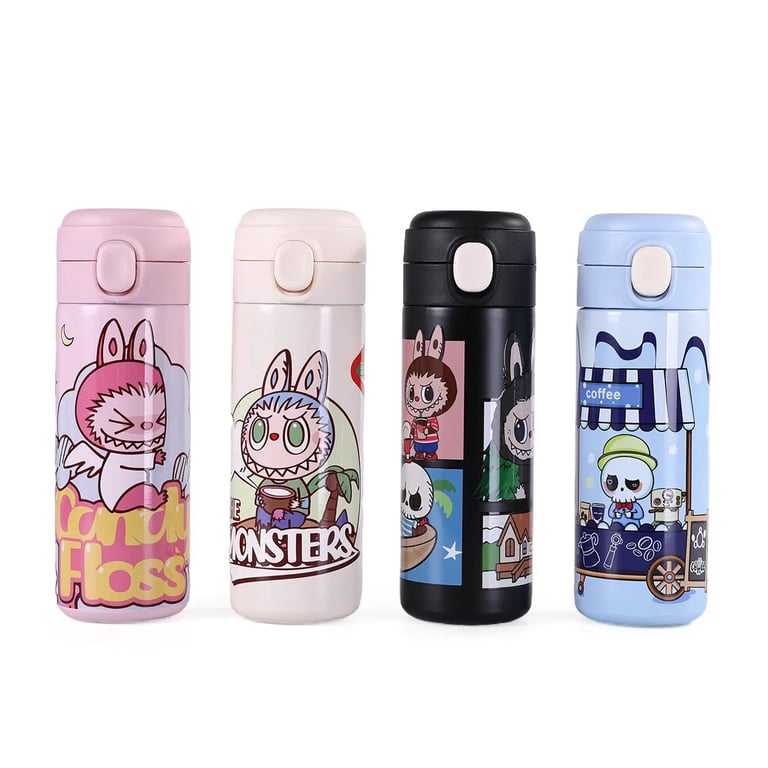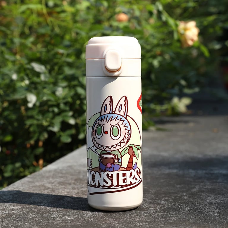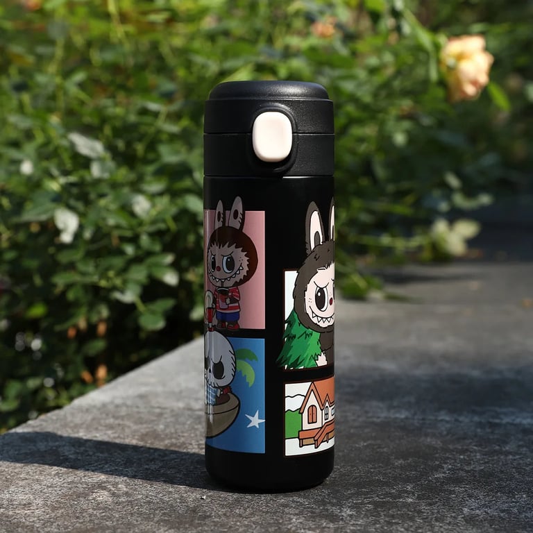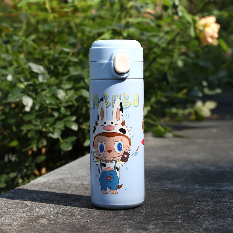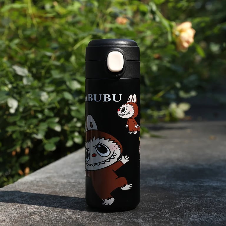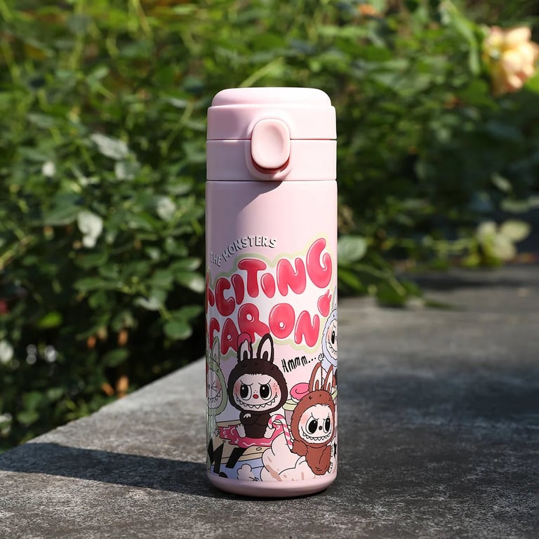 A practical insulated bottle with a cute Labubu motif is ideal for children and adults on the go, to school or to work. Thanks to vacuum insulation and high-quality stainless steel, it keeps drinks hot or cold for a long time and is securely leak-proof.