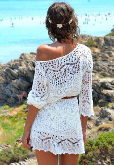 Lace hole beach women's tunic with a belt