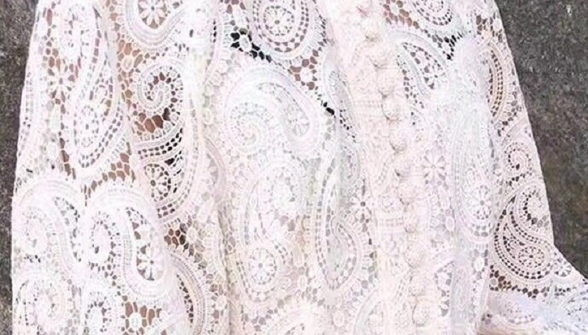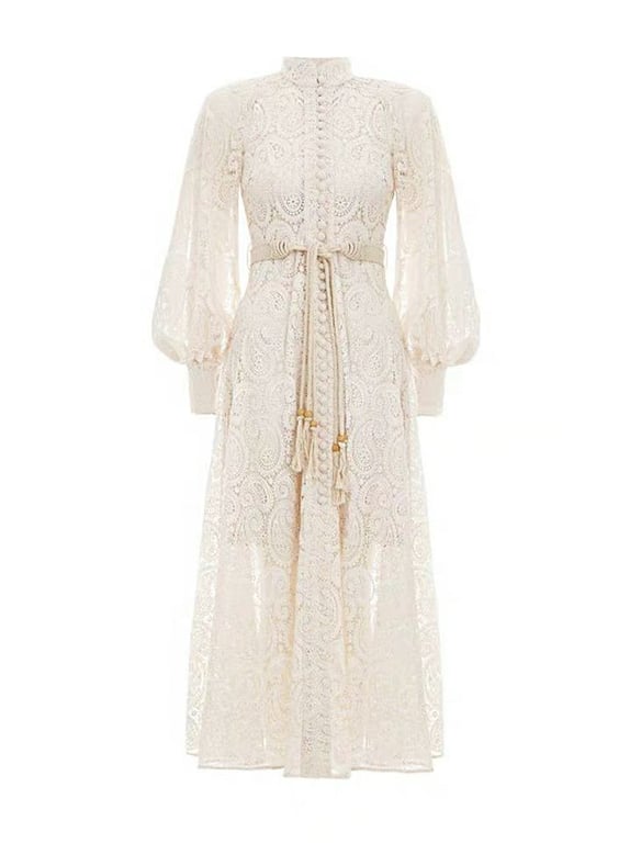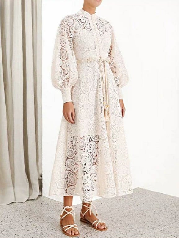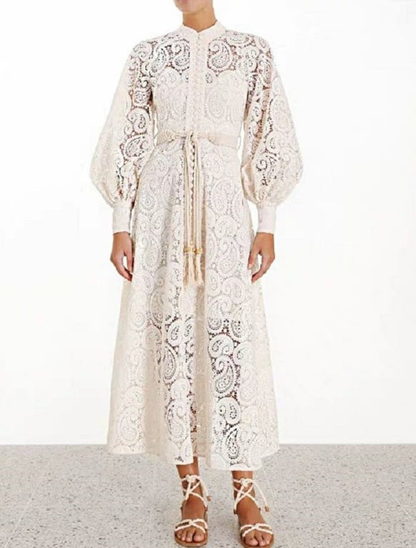 Lace midi dress with long sleeves.
