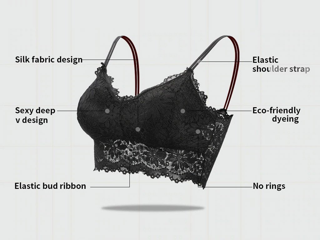 Elegant lace push-up bra is made from a pleasant material, featuring a high band and adjustable double straps. It is beautifully adorned with floral patterns. Choose from 4 colours and 3 sizes.