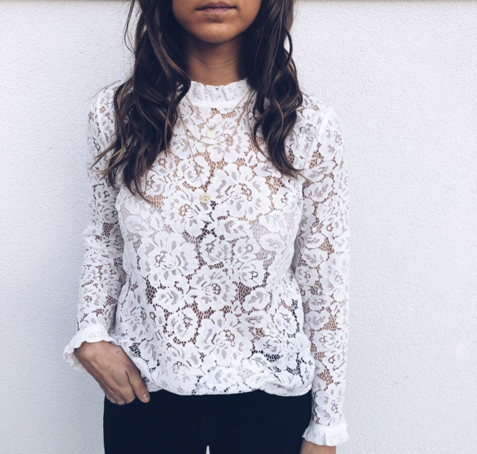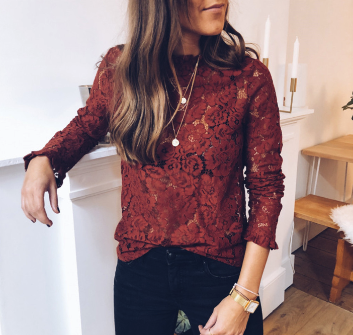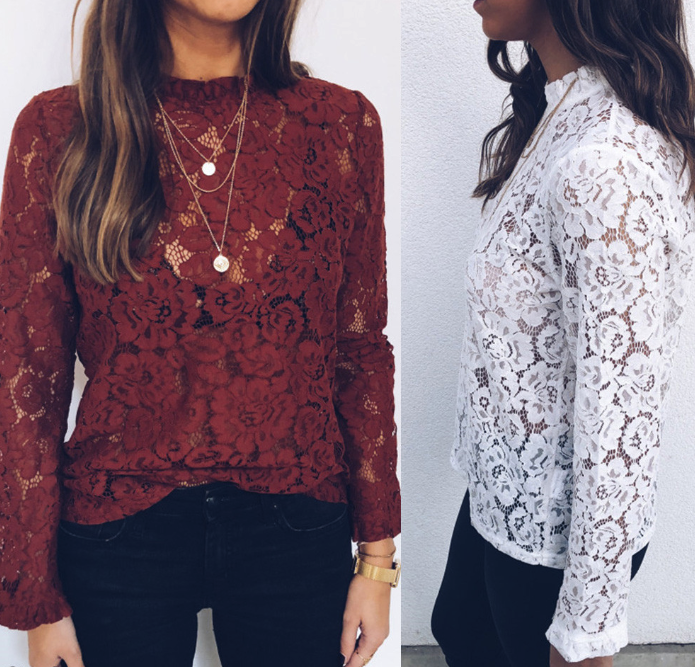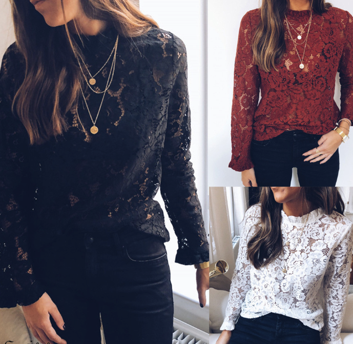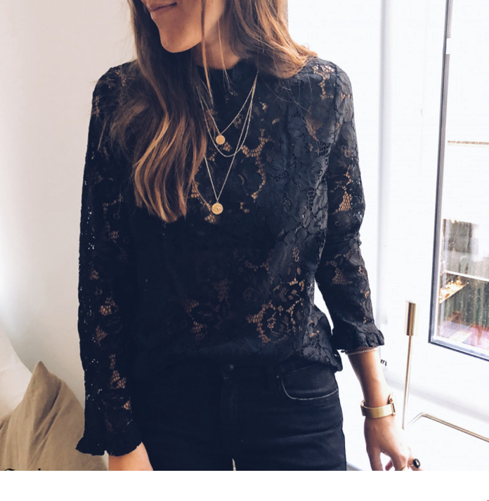 Lace sheer loose women's long-sleeve shirt
