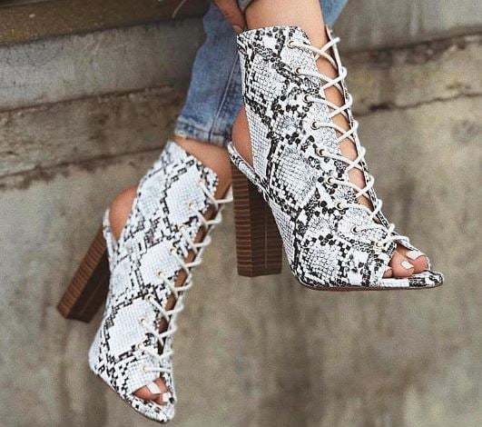 Lace-up snake print women's heels