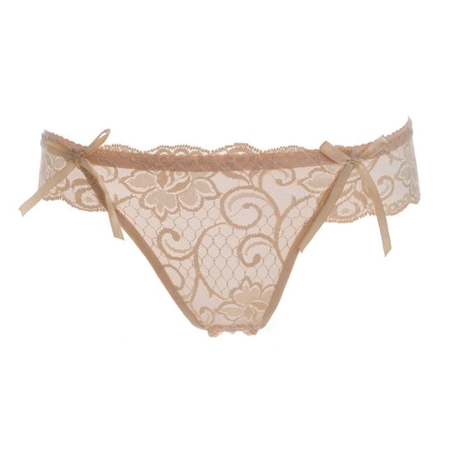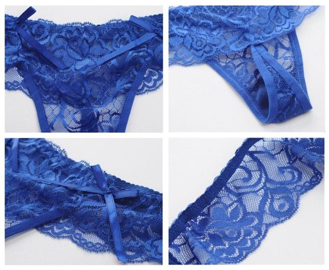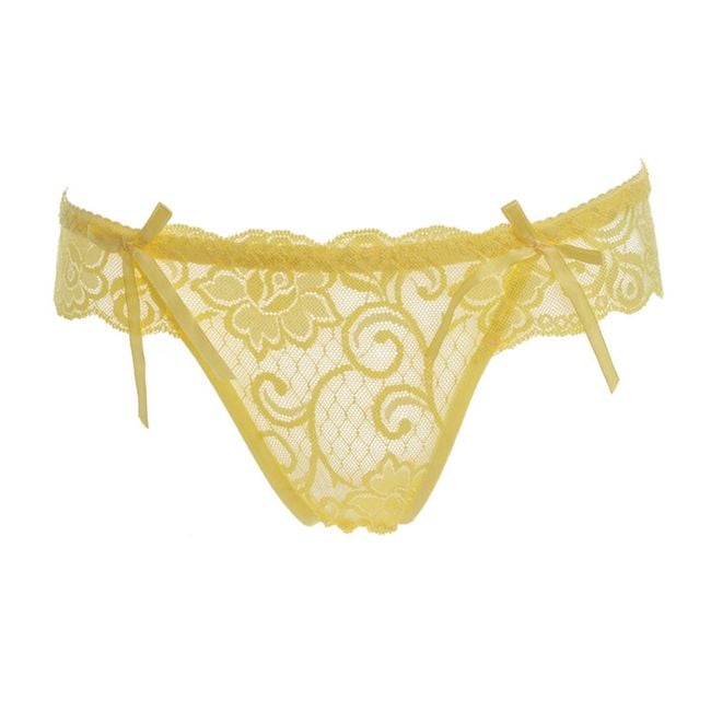 Sexy thongs are especially appreciated by partners. The delicate panties are adorned with lace and bows. The transparent material is sexy and the back strip flatters the female bottom. The fabric is stretchy and will accommodate. Available in 7 colour options.